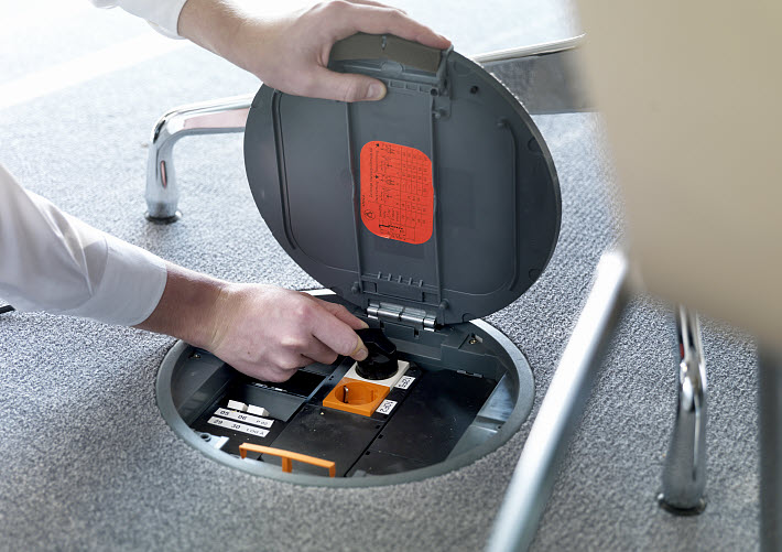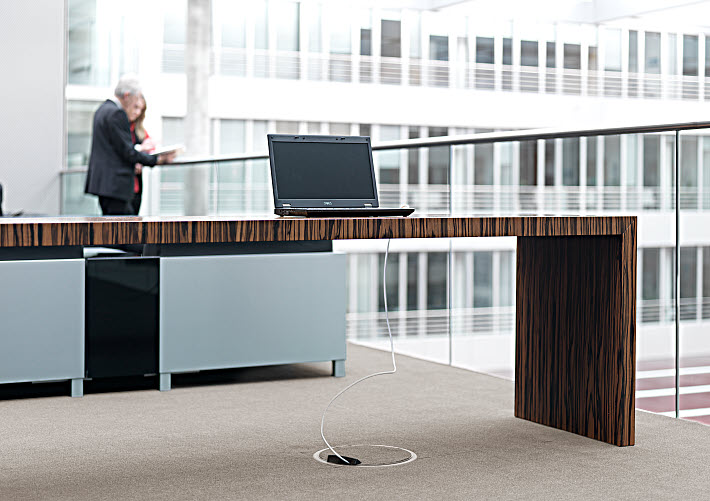 Portátil ou terminal de informações: em algumas zonas de um edifício é suficiente uma alimentação pontual. A família GESRM2 da OBO leva a corrente elétrica e os dados onde quer que estes sejam necessários. Como solução individual ou como complemento de sistemas de chão complexos.