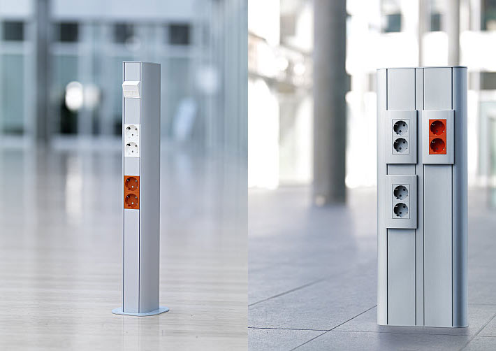 Quer sejam estreitas, largas ou até para acomodar equipamentos em várias laterais: as colunas de distribuição da OBO fazem sempre boa figura nos escritórios. Em versões mais modestas são também uma alternativa interessante, por exemplo em áreas com piso de chão falso. Podem ser montadas livremente nas proximidades de locais de trabalho e possibilitam um acesso rápido à corrente elétrica e a dados.