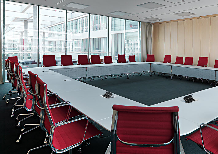 Ideal para salas de conferência: A Deskbox oscilante mostra subtilmente o seu tamanho. As diversas versões permitem equipar os diferentes espaços de acordo com as suas necessidades e desejos.