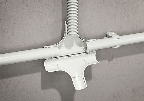 A derivação em T da gama de acessórios Quick-Pipe assegura uma instalação particularmente rápida e instalação posterior. Devido à sua dobradiça, o acessório é composto apenas por uma peça e pode ser facilmente aberto e instalado com uma só mão. Assim, é possível abri-lo e fecha-lo quantas vezes as necessárias. Isto garante ainda mais flexibilidade e economia de tempo durante a instalação, visto não ser necessário montar ambas as meias conchas. Também é possível realizar instalações posteriores as vezes que forem necessárias e de um modo descomplicado