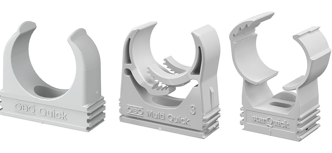 Os componentes do sistema Quick-Pipe são indissociáveis e proporcionam numerosas vantagens durante a instalação: caso os tubos de instalação elétrica e os acessórios Quick-Pipe sejam fixados com abraçadeiras OBO-Quick, por exemplo, todo o sistema atinge o grau de proteção IP44.