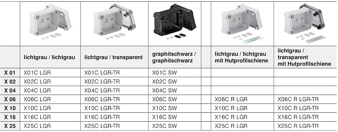 Em geral, a série X cobre todos os requisitos para caixas de derivação modernas e orientadas para a prática.