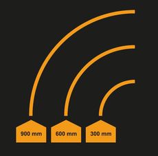 A partir de agora os acessórios estão disponíveis em três raios de sistema. O raio de sistema padrão é de 300 mm, a pedido também estão disponíveis raios de 600 e 900 mm.