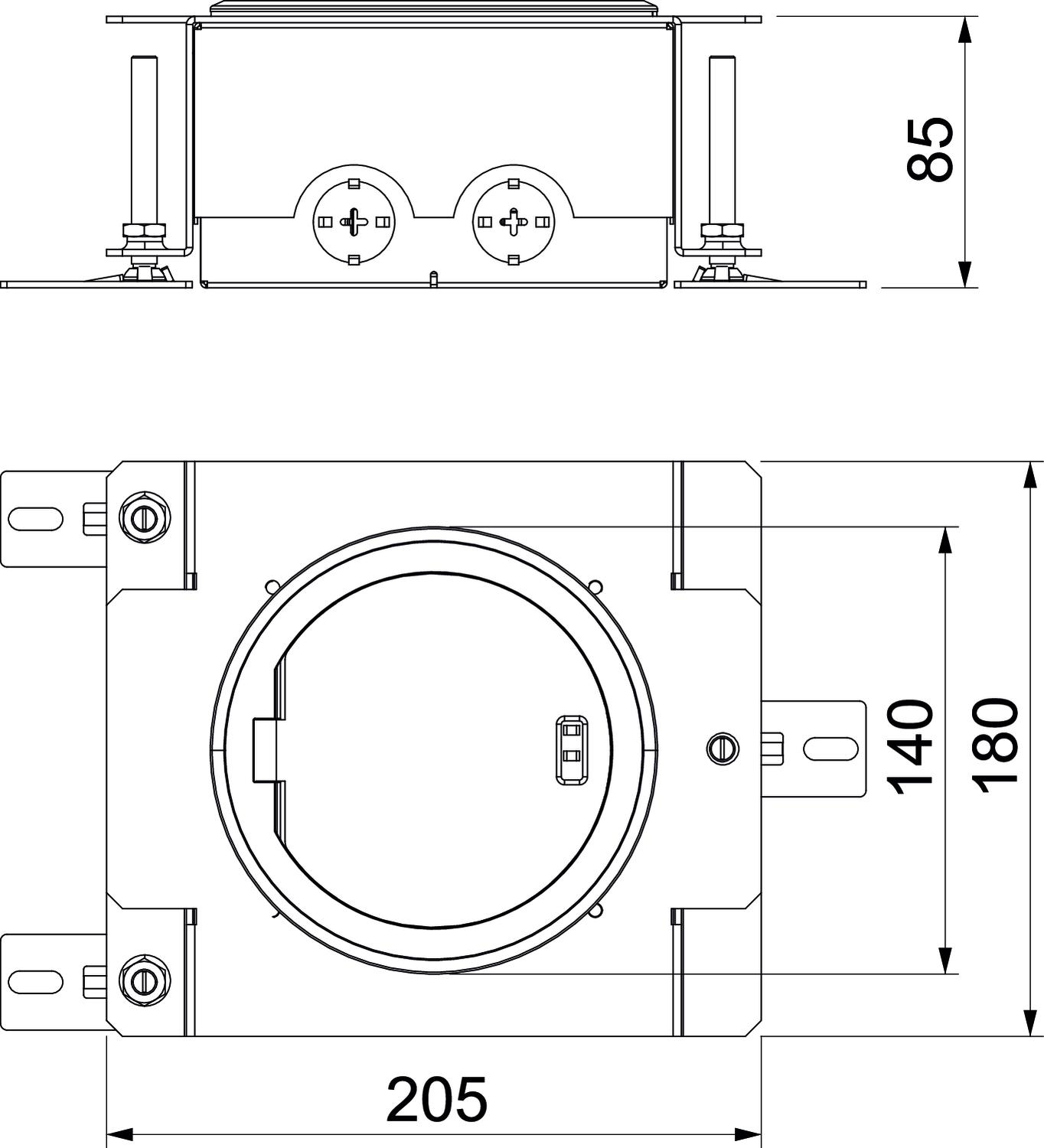 Altura do pavimento mín. 85 mm Altura máx. do pavimento 130 mm Altura máx. do soalho 130 mm Altura mín. do pavimento 85 mm Carga vertical, grande área até 15.000 N Carga vertical, pequena área até 3.000 N Design da estrutura Estrutura de proteção da carpete Diâmetro de instalação 122 Diâmetro exterior 140 mm Dimensão 140x140x85 Grau de proteção IP66 Grau de proteção (IP), em não utilização IP66 Grau de proteção (IP), em utilização IP20 Grau de proteção código IK IK10 Material Zinco fundido sobre pressão Mecanismo de abertura Corrediça de encaixe Norma EN 50085-2-2 Número de tomadas SCHUKO 2 Pegada de CO2 (GWP) do berço ao portão 11,4727 kg CO2e / 1 Peça Permissões VDE Profundidade de instalação 85 mm Tratamento do pavimento húmido - Todos os tipos