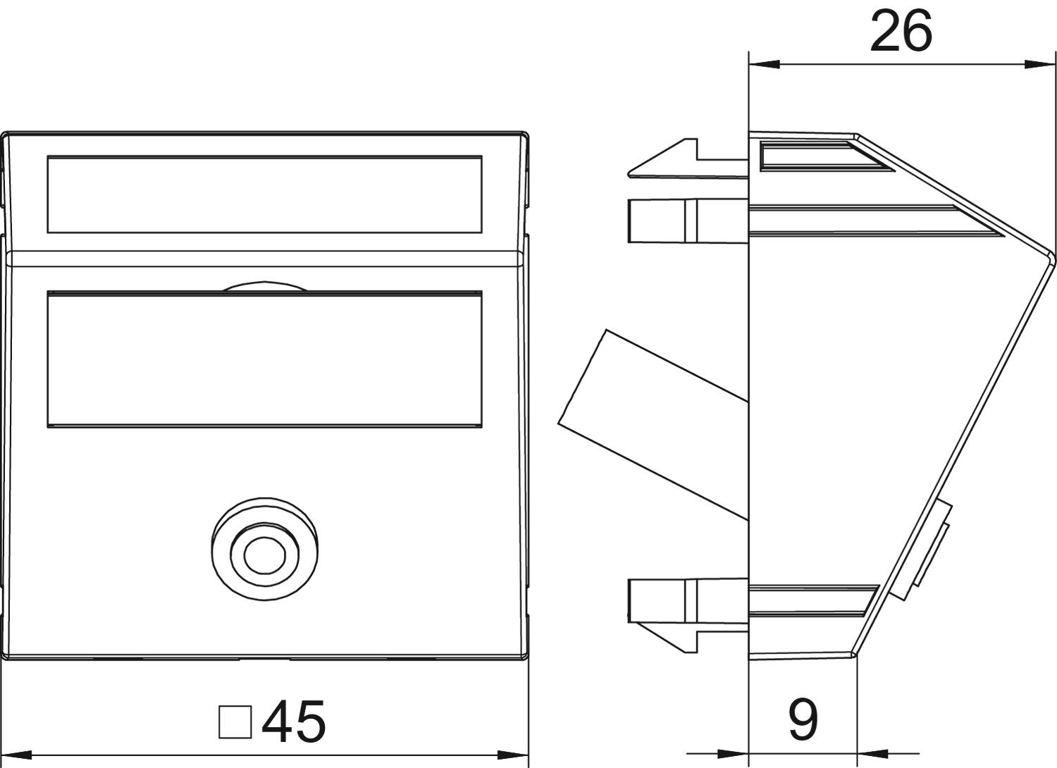 Altura 45 mm Anel de suporte não Borne do lustre não Com impressão não Com proteção contra pó não Composição Elemento base com espelho de placa central Cor alumínio lacado Dimensão 45x45mm Etiqueta de inscrição com etiqueta Grau de proteção IP20 Largura 45 mm Livre de halogéneos sim Material Policarbonato Número de unidades 1 Pegada de CO2 (GWP) do berço ao portão 0,1068 kg CO2e / 1 Peça Possibilidade de alívio de tensão não Profundidade 26 mm Tampa basculante não Tipo de fixação engatar Transparente não Utilização Ligação TRS Versão da superfície baço - Todos os tipos