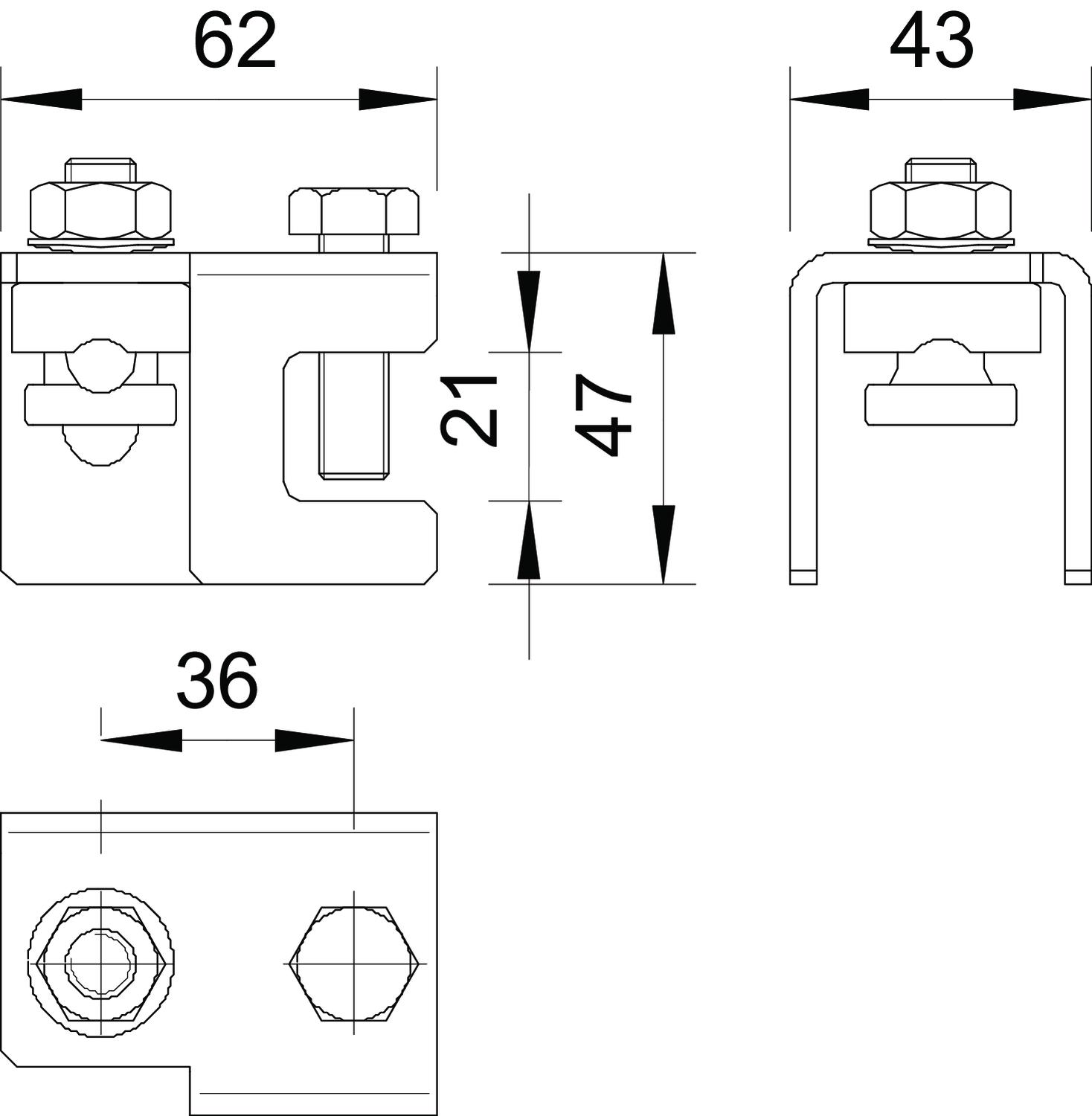 • para fixar em estruturas com espessura de flange até 20 mm