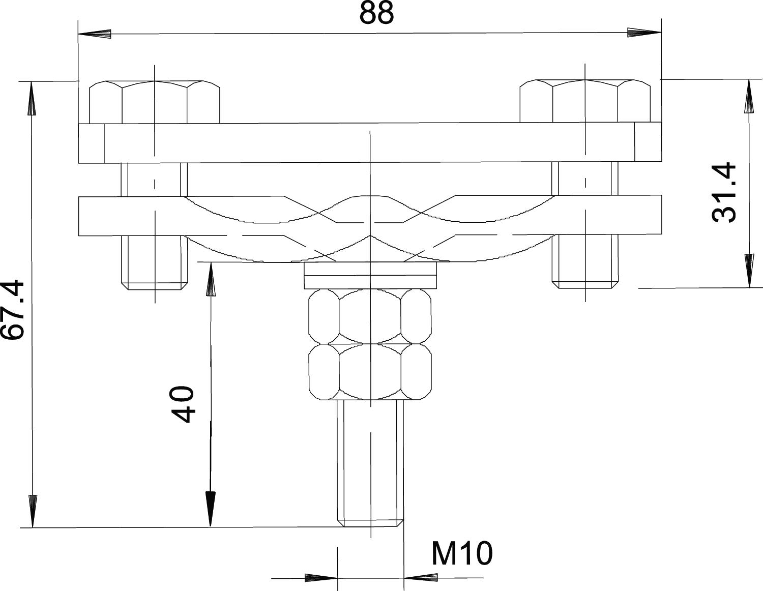 • com perno soldado M10 x 40, incluindo 2 anilhas e 2 porcas