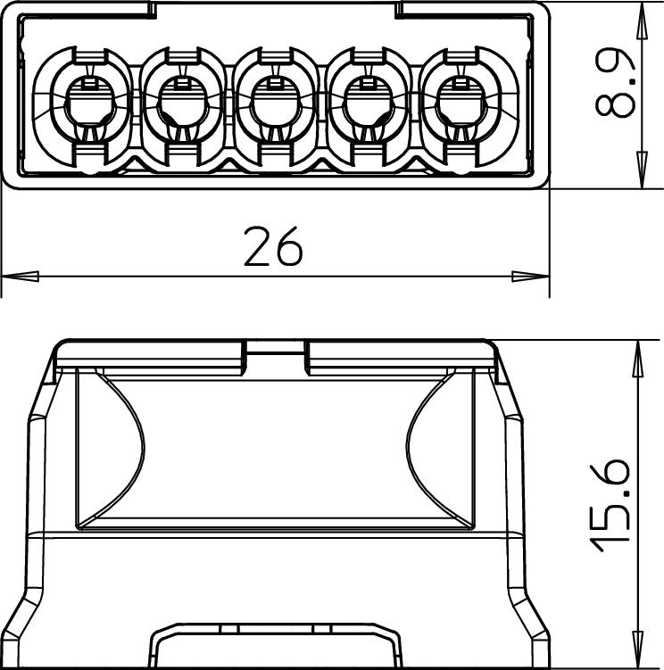 Altura 8,9 mm Apropriada para condutor flexível não Apropriada para condutor multifilar sim Apropriada para condutor unifilar não Com alavancas de acionamento não Comprimento 26 mm Cor cinzento claro; RAL 7035 Corrente nominal 24 A Dimensão 5x2,5mm² Gama de temperaturas de aplicação máx. 90 °C Gama de temperaturas de aplicação mín. -5 °C Largura 15,6 mm Material Poliamida Número de polos 5 Número de pontos de aperto 5 resistência ao fio incandescente conforme a VDE 0471/DIN 695 Parte 2-1, temperatura de ensaio 850 °C Secção 5 x 0,5 mm² - 2,5 mm² condutor unifilar 5 x 1,5 mm² - 2,5 mm² condutor rígido multifilar mm² Secção transversal nominal máx. 2,5 mm² Secção transversal nominal mín. 0,5 mm² Secção transversão do condutor conectável de um fio máx. 2,5 mm² Secção transversão do condutor conectável de um fio mín. 0,5 mm² Secção transversão do condutor conectável de vários fios máx. 2,5 mm² Secção transversão do condutor conectável de vários fios mín. 1,5 mm² Tensões nominais 450 V - Todos os tipos