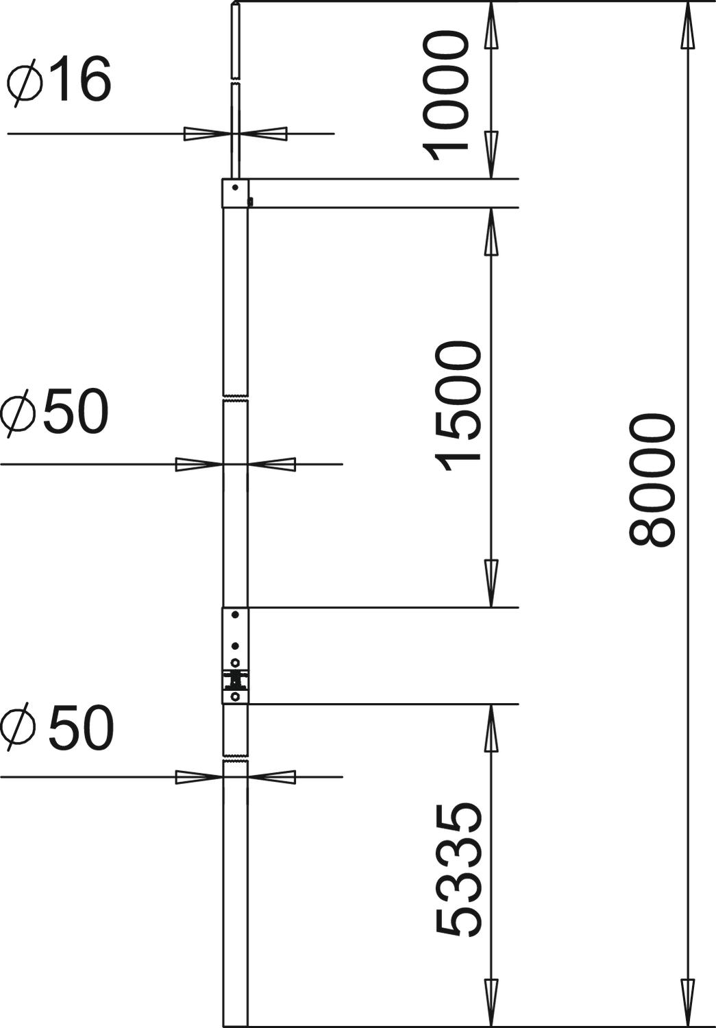 Comprimento 8000 mm Diâmetro 50 mm Dimensão 8000mm Ligação Cabo de terras Material Plástico reforçado com fibra de vidro Medida A 5335 mm Medida B 1000 mm Medida d mín. 50 mm Medida H 1500 mm Medida L 8000 mm Pegada de CO2 (GWP) do berço ao portão 124,5676 kg CO2e / 1 Peça Versão Haste captora Versão com isolamento fixo contra alta tensão sim - Todos os tipos