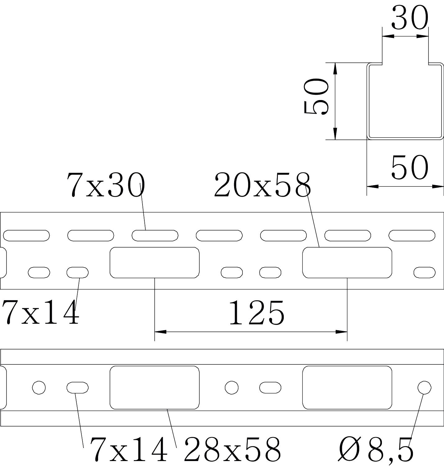 Descrição do produtoMíni canal AZ com uma altura lateral de 50 mm.