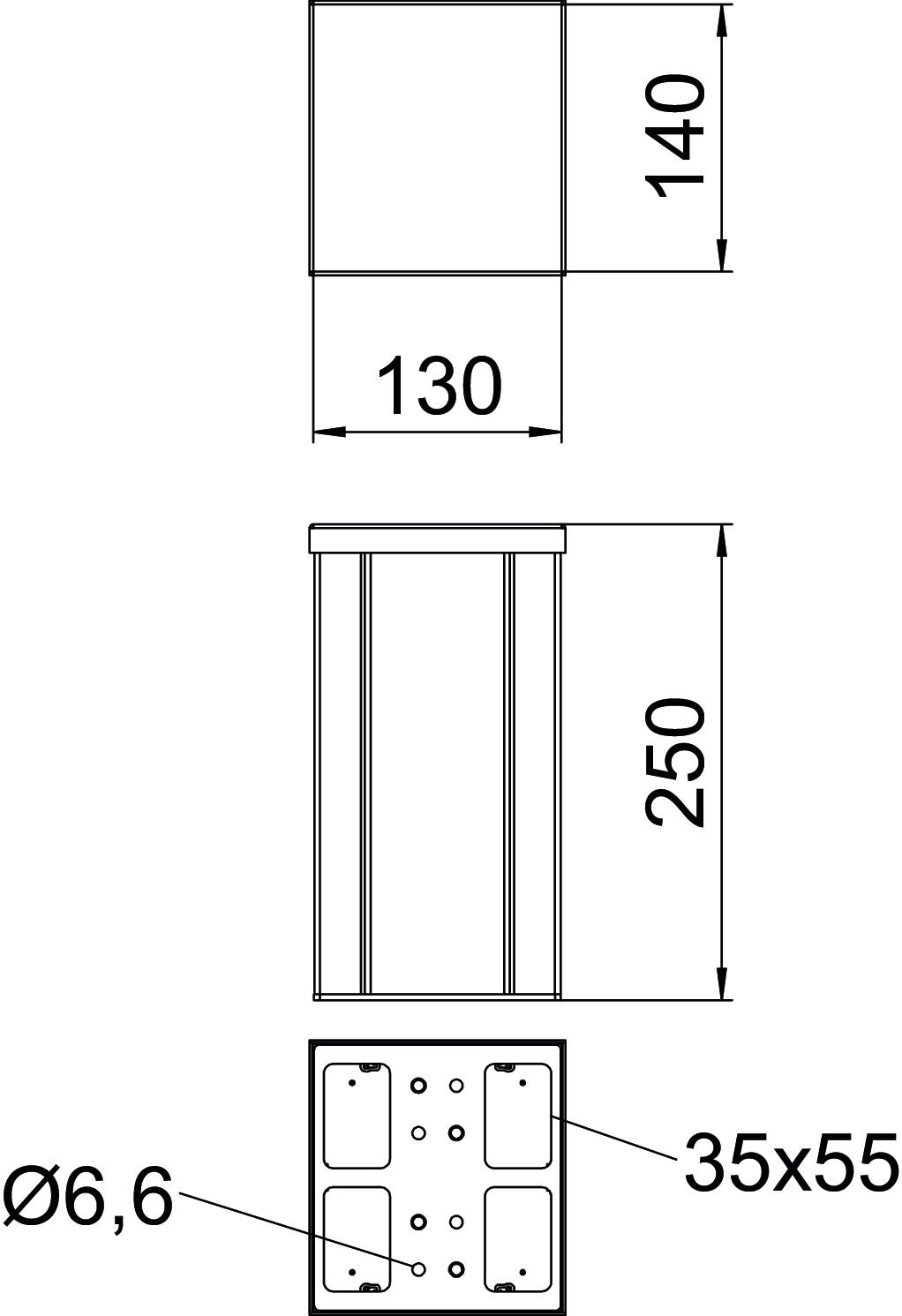 Altura 140 mm Altura da coluna mín. 250 mm Comprimento 250 mm Cor alumínio Dimensão 250x130x140 Entrada de cabo em baixo Forma das colunas retangular Instalação no teto não Largura 130 mm Largura da tampa 76,5 mm Livre de halogéneos sim Material Alumínio Montagem no pavimento sim Móvel não Número de tampas aplicáveis 2 Número de vias 2 St. Pegada de CO2 (GWP) do berço ao portão 22,2513 kg CO2e / 1 Peça Perfil contínuo sim Pré-cablada não Regulável não Superfície anodizado Tipo de fixação aparafusar Versão bilateral - Todos os tipos