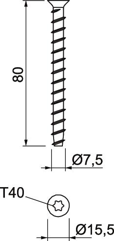 Comprimento 80 mm Comprimento da bucha 80 mm Cor zinco Diâmetro da cabeça 15,5 mm Diâmetro da rosca ST 7,5 Diâmetro de perfuração mín. 6 mm Dimensão 7,5x80 Dimensão 7,5x80 Formato da cabeça Cabeça embutida Material Aço Medida L 80 mm Parafusos Torx Superfície galvanizado Versão das buchas/pregos/parafusos Buchas em espiral - Todos os tipos