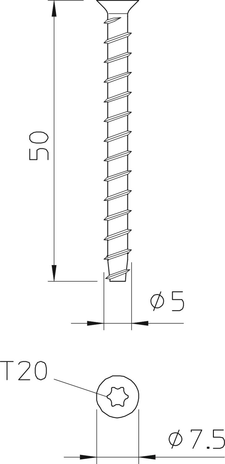 Comprimento 50 mm Comprimento da bucha 50 mm Cor zinco Diâmetro da cabeça 7,5 mm Diâmetro da rosca ST 5 Diâmetro de perfuração mín. 4 mm Dimensão 5x50mm Dimensão 5 x 50 Formato da cabeça Cabeça embutida Material Aço Medida L 50 mm Parafusos Torx Superfície eletrogalvanizado - Todos os tipos