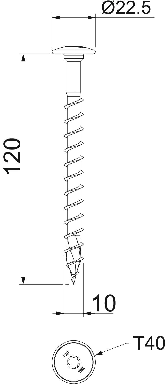 Comprimento 120 mm Cor zinco Diâmetro da cabeça 22,5 mm Diâmetro da haste 7 mm Dimensão 10x120 Duas posições não Endurecido sim Formato da cabeça Cabeça redonda Material Aço Medida D 10 mm Medida L 120 mm Parafusos Torx Superfície eletrogalvanizado - Todos os tipos