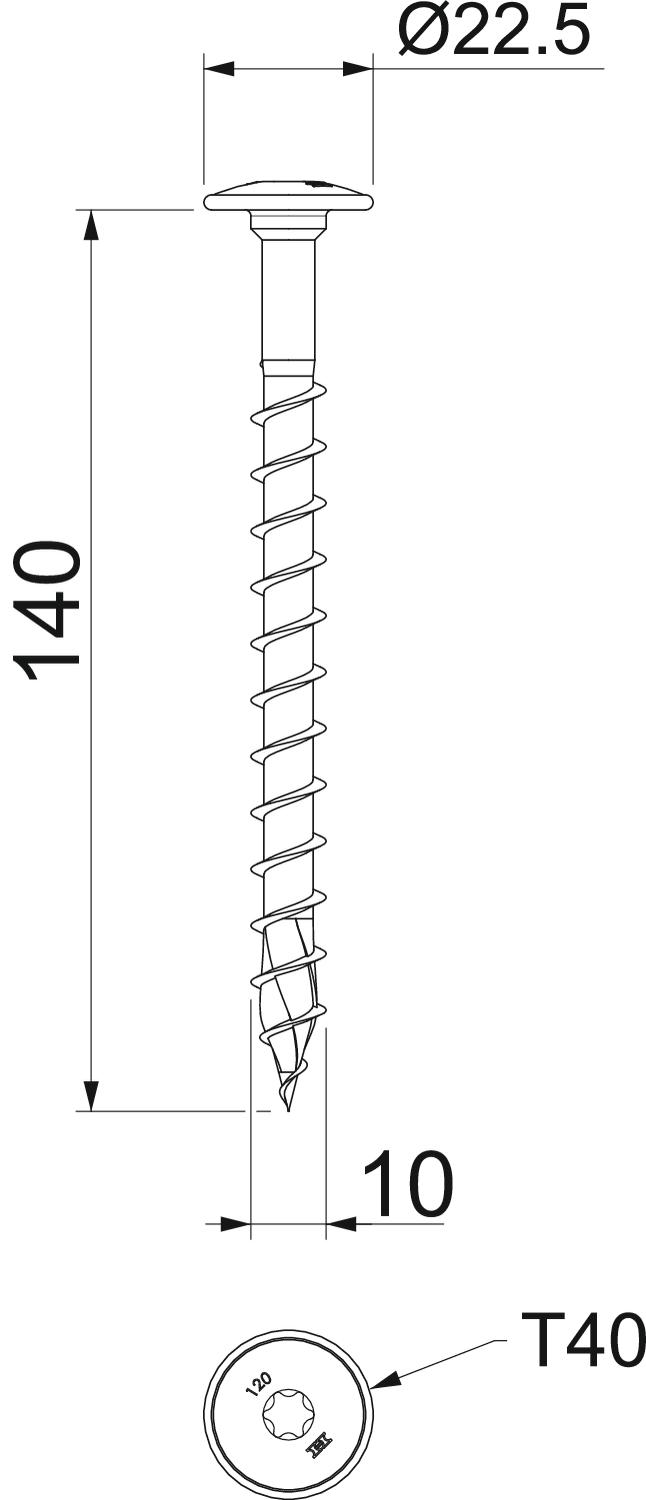 Comprimento 140 mm Cor zinco Diâmetro da cabeça 22,5 mm Diâmetro da haste 7 mm Dimensão 10x140 Duas posições não Endurecido sim Formato da cabeça Cabeça redonda Material Aço Medida D 10 mm Medida L 140 mm Parafusos Torx Superfície eletrogalvanizado - Todos os tipos