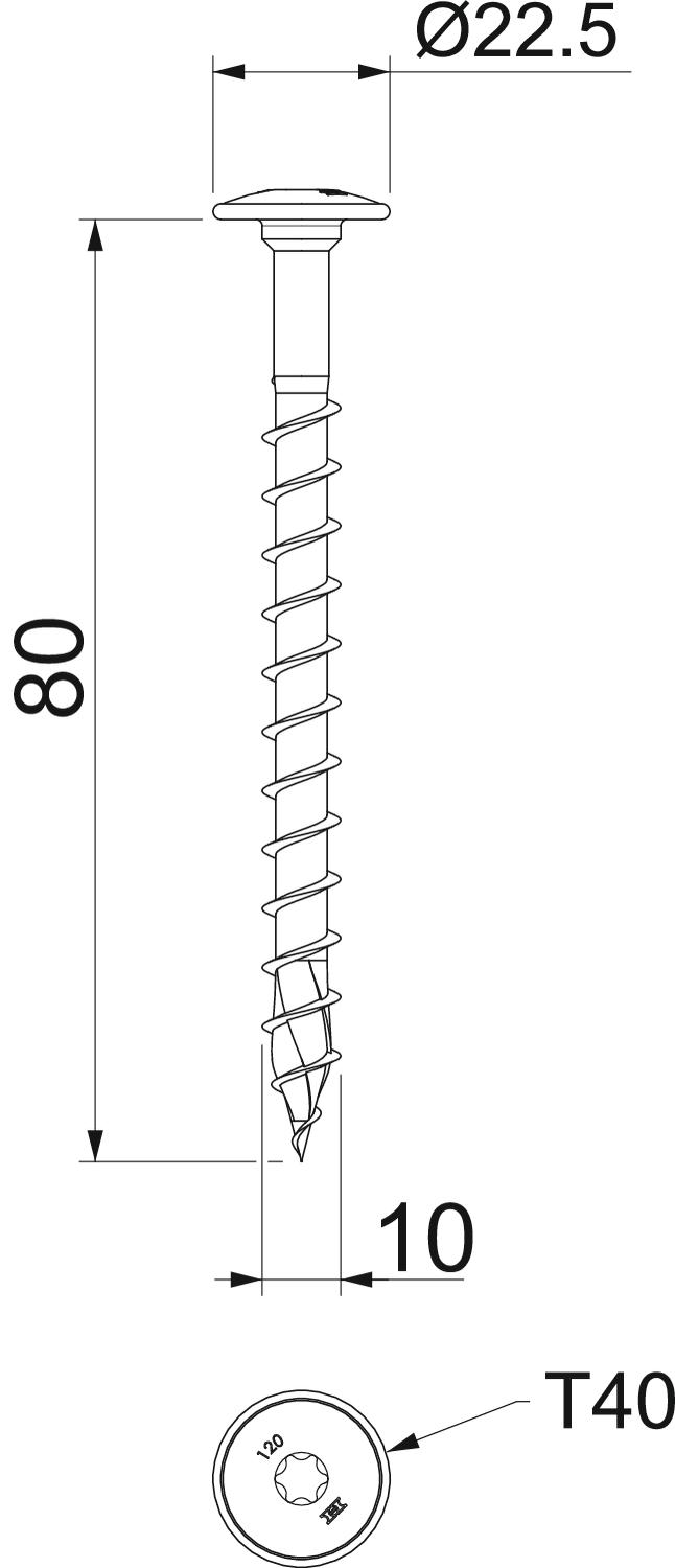 Comprimento 80 mm Cor zinco Diâmetro da cabeça 22,5 mm Diâmetro da haste 7 mm Dimensão 10x80 Duas posições não Endurecido sim Formato da cabeça Cabeça redonda Material Aço Medida D 10 mm Medida L 80 mm Parafusos Torx Superfície eletrogalvanizado - Todos os tipos