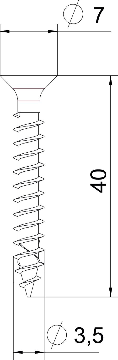 Comprimento 40 mm Diâmetro da cabeça 7 mm Dimensão 3,5x40mm Duas posições não Endurecido não Formato da cabeça Cabeça embutida Material Aço inoxidável, livre de ferrugem Medida D 3,5 mm Medida L 40 mm Parafusos Torx Superfície brilhante, pós-tratamento Tamanho do atuador TX 10 - Todos os tipos