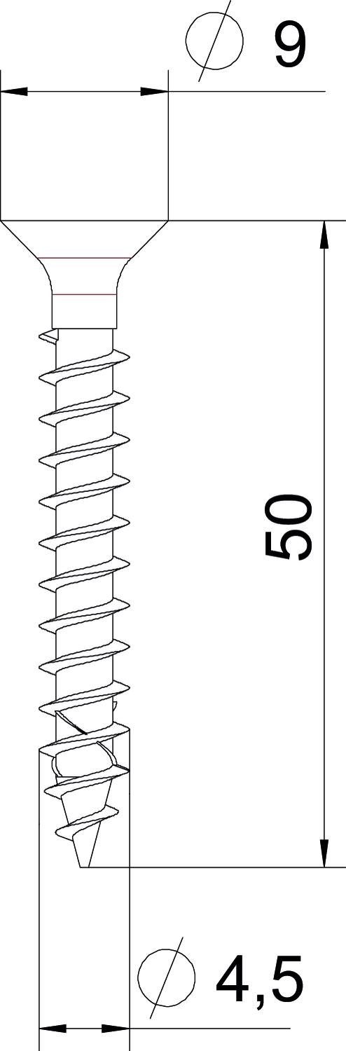 Comprimento 50 mm Diâmetro da cabeça 9 mm Dimensão 4,5x50mm Duas posições não Endurecido não Formato da cabeça Cabeça embutida Material Aço inoxidável, livre de ferrugem Medida D 4,5 mm Medida L 50 mm Parafusos Torx Superfície brilhante, pós-tratamento Tamanho do atuador TX 20 - Todos os tipos