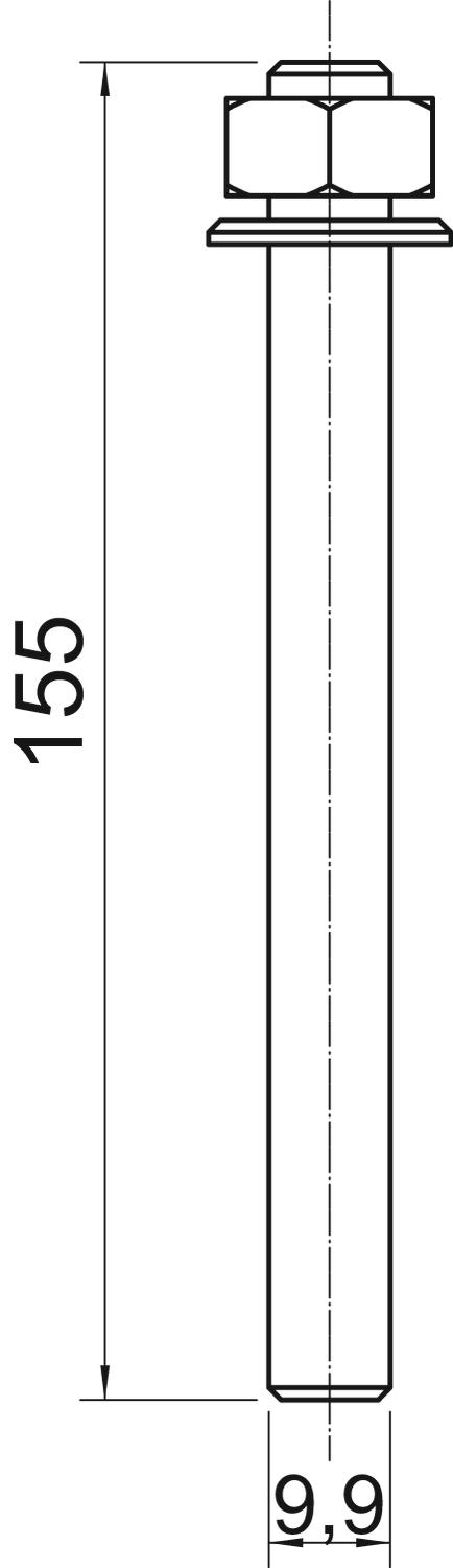O parafuso de ancoragem VMU-A 12x155 mm é montado com bucha perfurada em plástico VM-SH 20x85.