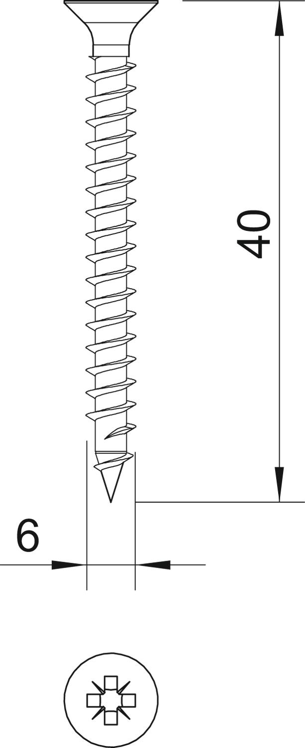 Comprimento 40 mm Diâmetro da cabeça 11 mm Dimensão 6x40mm Endurecido sim Formato da cabeça Cabeça embutida Material Aço Medida D 6 mm Medida L 40 mm Parafusos Pozidriv PZ Superfície eletrogalvanizado - Todos os tipos