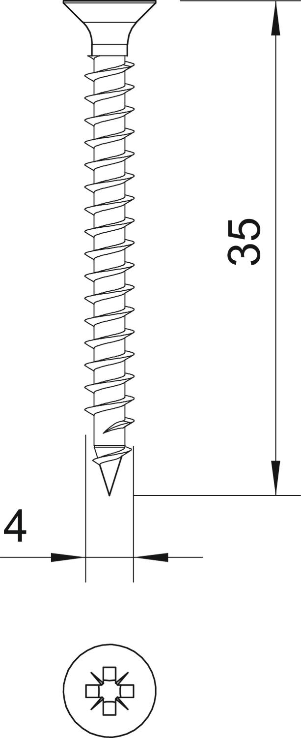 Comprimento 35 mm Diâmetro da cabeça 7,5 mm Dimensão 4x35mm Endurecido sim Formato da cabeça Cabeça embutida Material Aço Medida D 4 mm Medida L 35 mm Parafusos Pozidriv PZ Superfície eletrogalvanizado - Todos os tipos