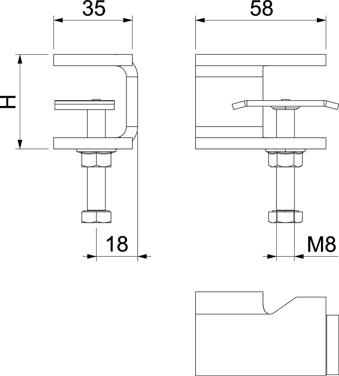 Descrição do produtoPeça de aperto para a fixação de caminhos de cabos tipo escada em vigas de aço horizontais.