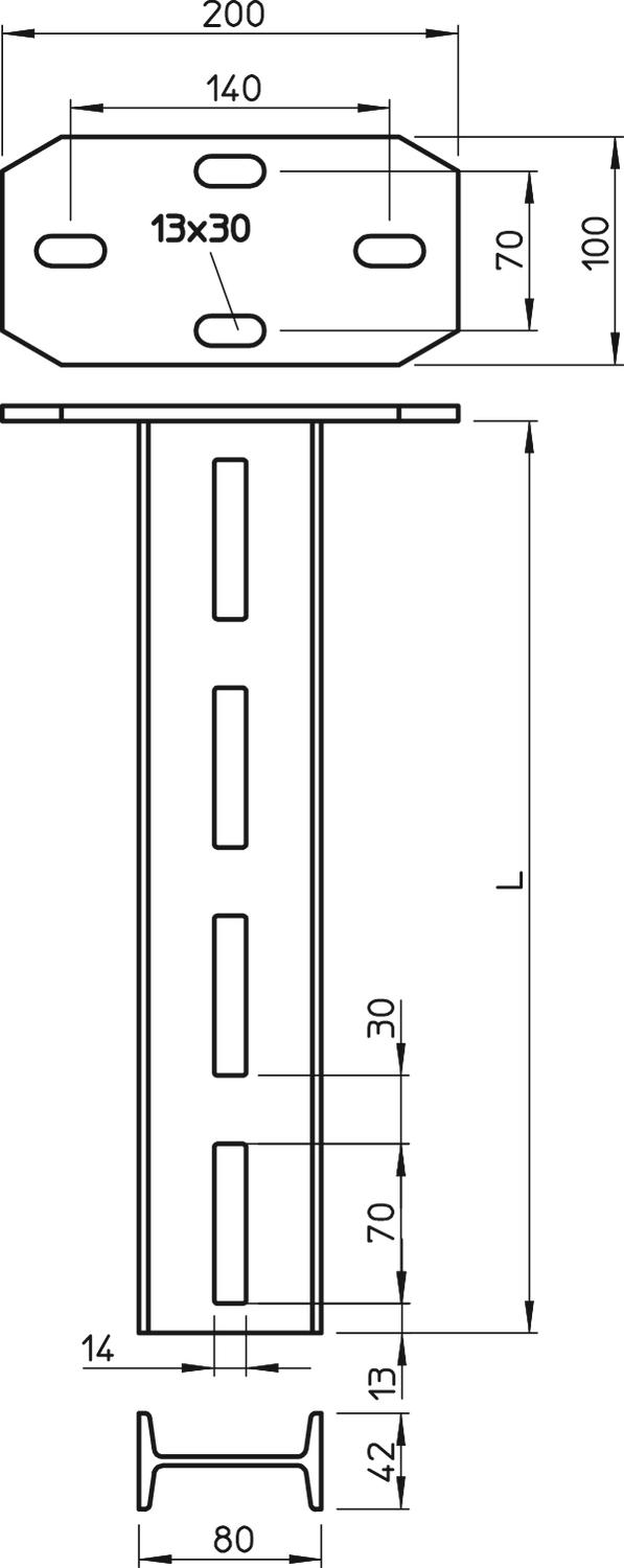 Altura 42 mm Carga máxima de tração 12 kN Com engrenagem não Comprimento 200 mm Comprimento da consola 200 9,6 kN Comprimento da consola 400 7 kN Comprimento da consola 600 5 kN Cor zinco Dimensão 80x42x200 Espessura do material 4 mm Funktionsgaranti não Largura 80 mm Largura de rasgo 70 mm Largura do orifício 14 mm Material Aço Pegada de CO2 (GWP) do berço ao portão 4,4898 kg CO2e / 1 Peça Superfície Galvanizado por imersão a quente após maquinação Versão Perfil I Dados técnicos