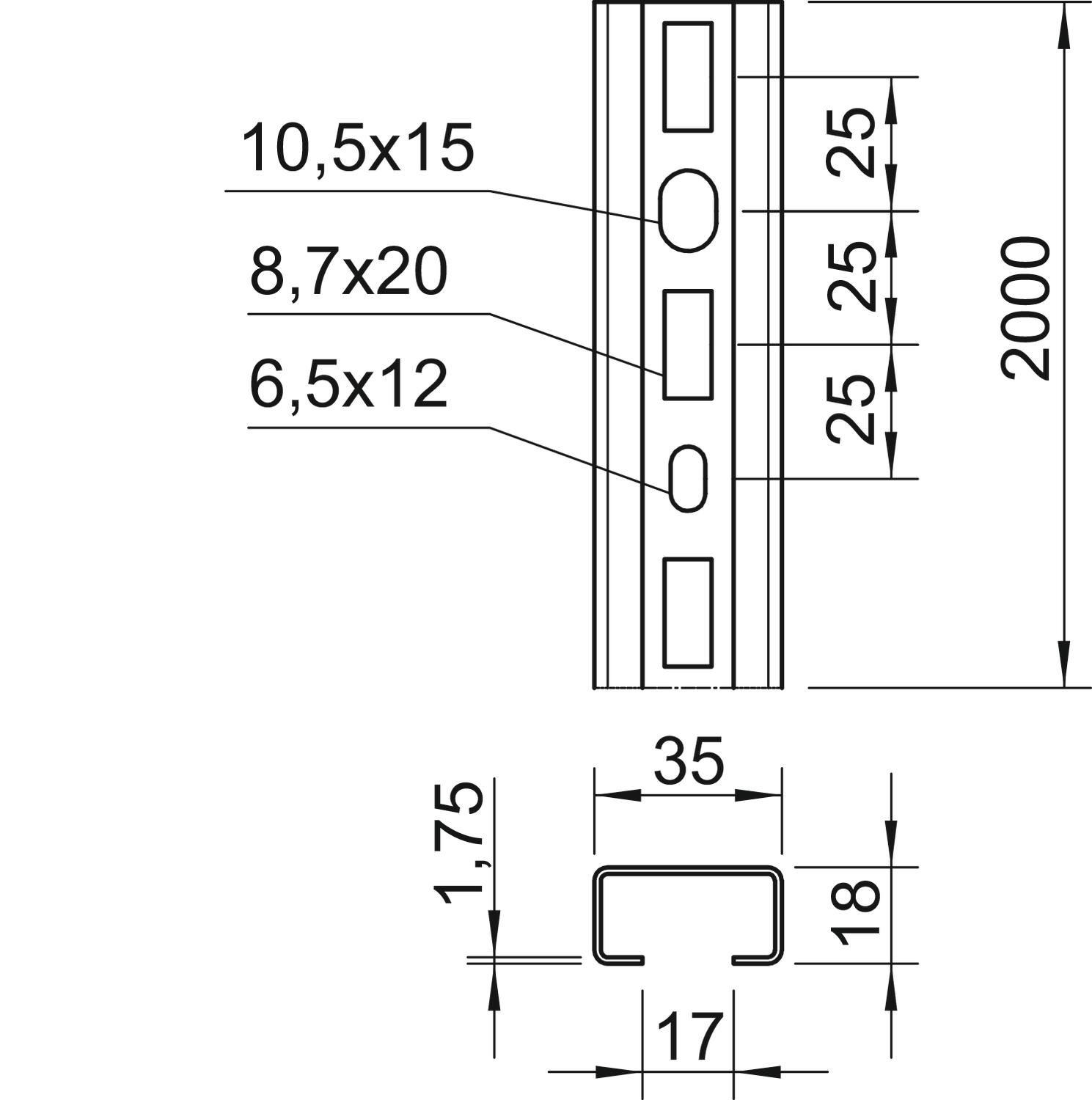 Aço inoxidável, decapado não Altura 18 mm Com engrenagem não Com perfuração sim Com pré-cortes não Comprimento 2000 mm Dimensão 2000x35x18 Espessura do material 1,75 mm Forma do perfil Perfil C Funktionsgaranti sim Largura 35 mm Largura de rasgo 17 mm Material Aço Medida L 2000 mm Pegada de CO2 (GWP) do berço ao portão 2,2879 kg CO2e / 1 Metro Superfície Galvanizado por imersão a quente após maquinação Tipo de perfuração Parte traseira perfurada Valor estático A 0,88 cm² Valor estático ly 0,41 cm⁴ Valor estático lz 1,81 cm⁴ Valor estático Wy 0,41 cm³ Valor estático Wz 1,03 cm³ Versão Perfil simples - Todos os tipos