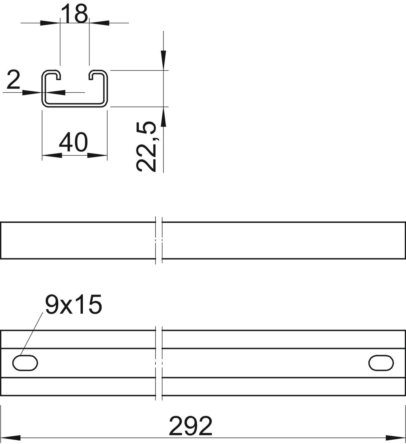 Altura 22,5 mm Comprimento 292 mm Dimensão 292x40x22,5 Dimensões LxA 40x22,5 mm Espessura do material 2 mm Forma do perfil Perfil C Largura 40 mm Largura de rasgo 18 mm Material Aço Pegada de CO2 (GWP) do berço ao portão 0,9895 kg CO2e / 1 Peça Superfície Galvanizado por imersão a quente após maquinação Tipo de perfuração Parte traseira perfurada Versão Perfil simples - Todos os tipos