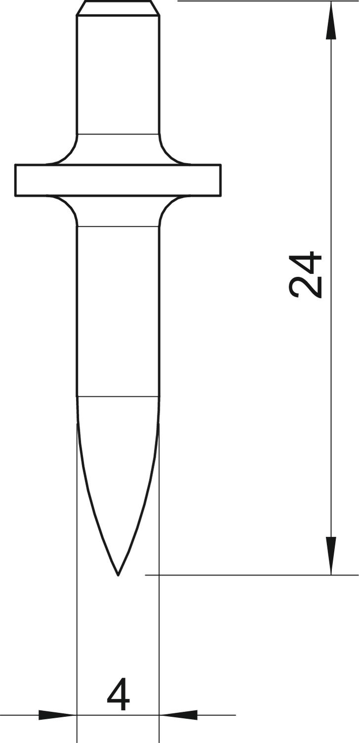 Comprimento 24 mm Comprimento da haste 18 Diâmetro de flange 10 mm Dimensão L18mm Endurecido sim Material Aço Medida d mín. 4 mm Medida L 24 mm - Todos os tipos