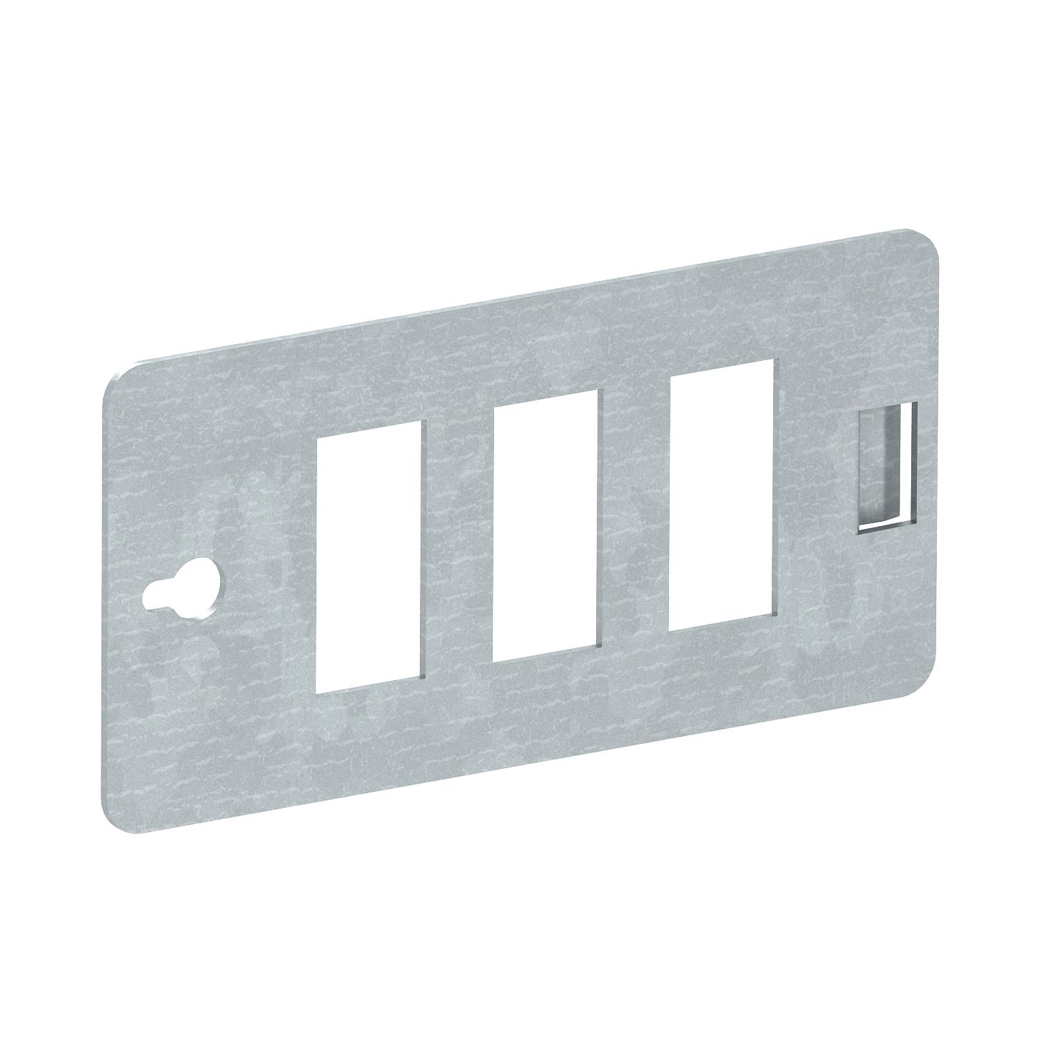 Descrição do produtoPlaca de suporte para o alojamento de 3 conectores Snap-In 3 polos numa caixa Consolidation Point.