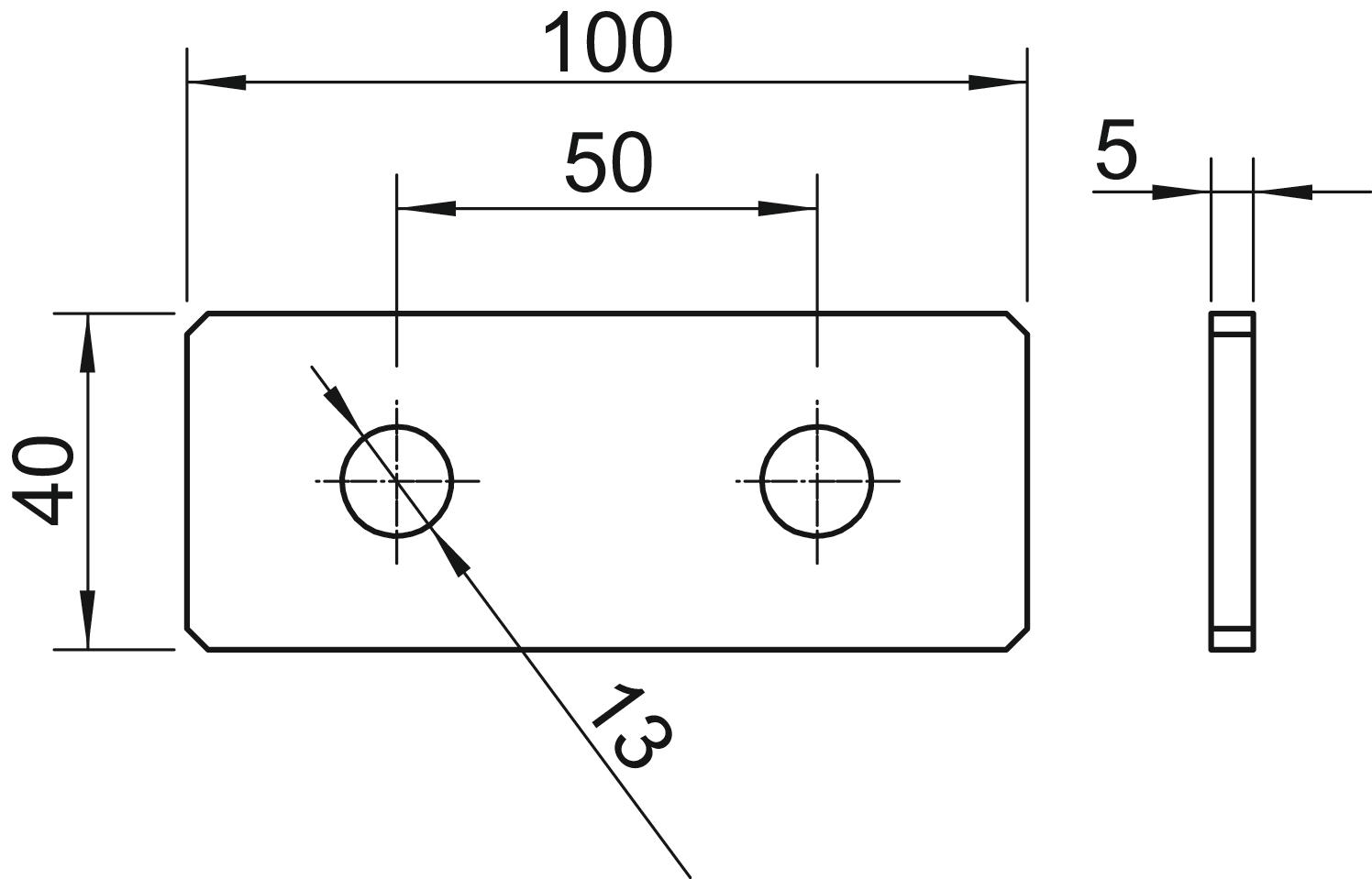 Descrição do produtoPlaca de união com 2 orifícios para a ligação longitudinal de perfis de 41 x 41 mm e 41 x 21 mm.