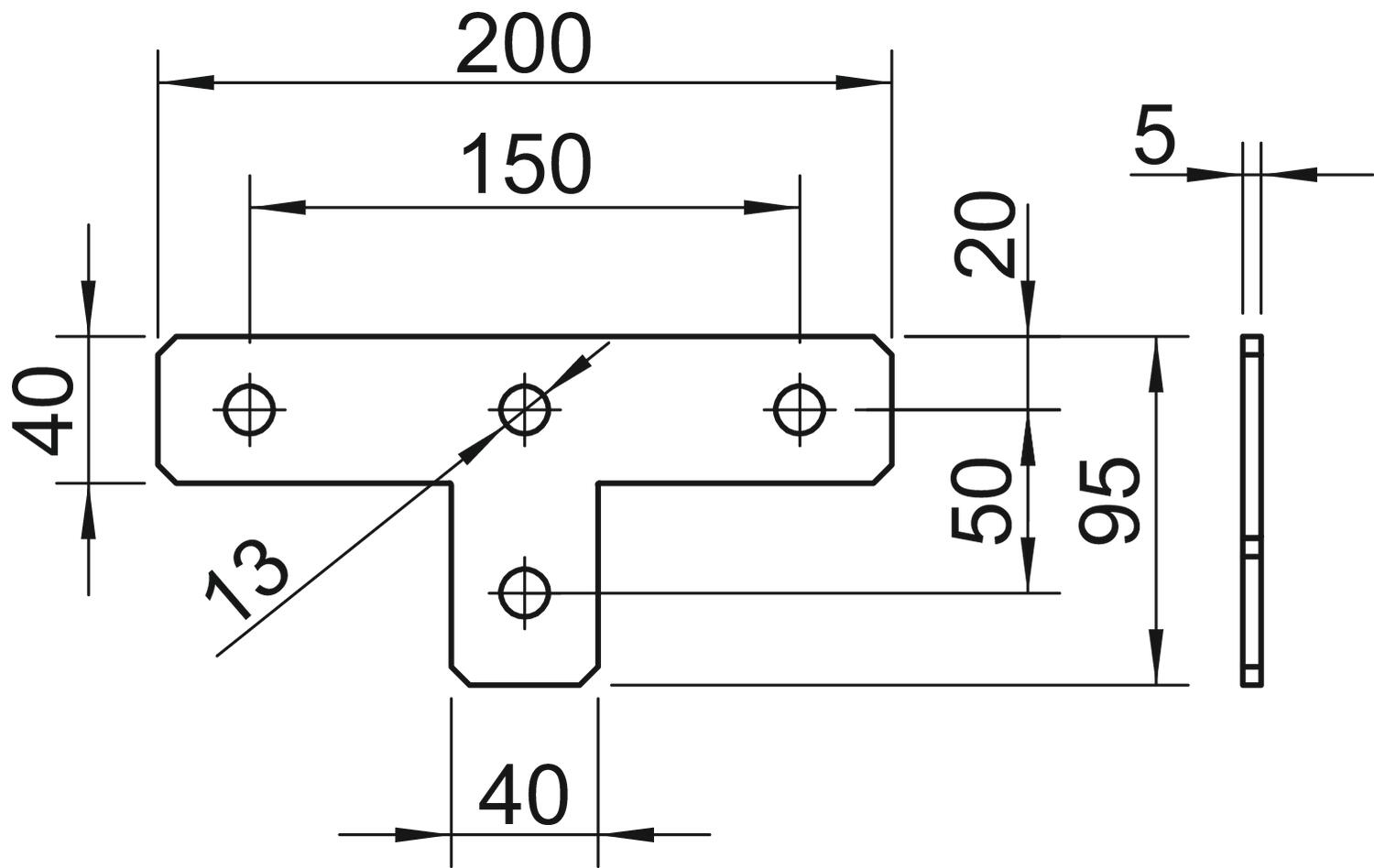 Descrição do produtoTê com 4 orifícios para a ligação de perfis de 41 x 41 mm e 41 x 21 mm.