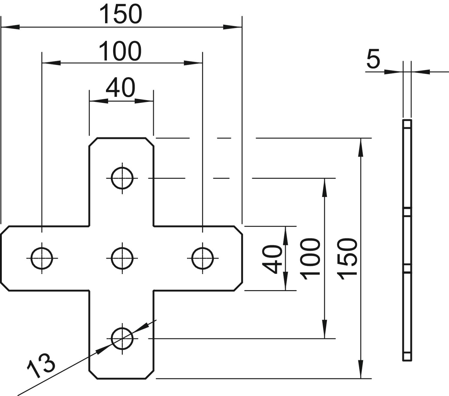 Descrição do produtoCruzeta com 5 orifícos para a ligação de perfis de 41 x 41 mm e 41 x 21 mm.