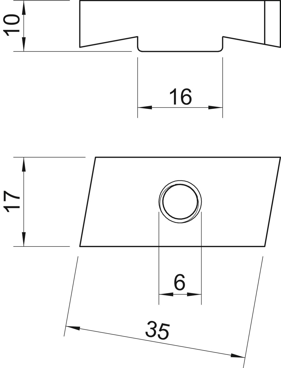 Altura 10 mm Com mola não Comprimento 35 mm Dimensão M6 Largura 17 mm Material Aço inoxidável, livre de ferrugem Medida B 17 mm Medida H 10 mm Medida L 30 mm Pegada de CO2 (GWP) do berço ao portão 0,1659 kg CO2e / 1 Peça Rosca M6 Rosca métrica 6 Superfície brilhante, pós-tratamento - Todos os tipos