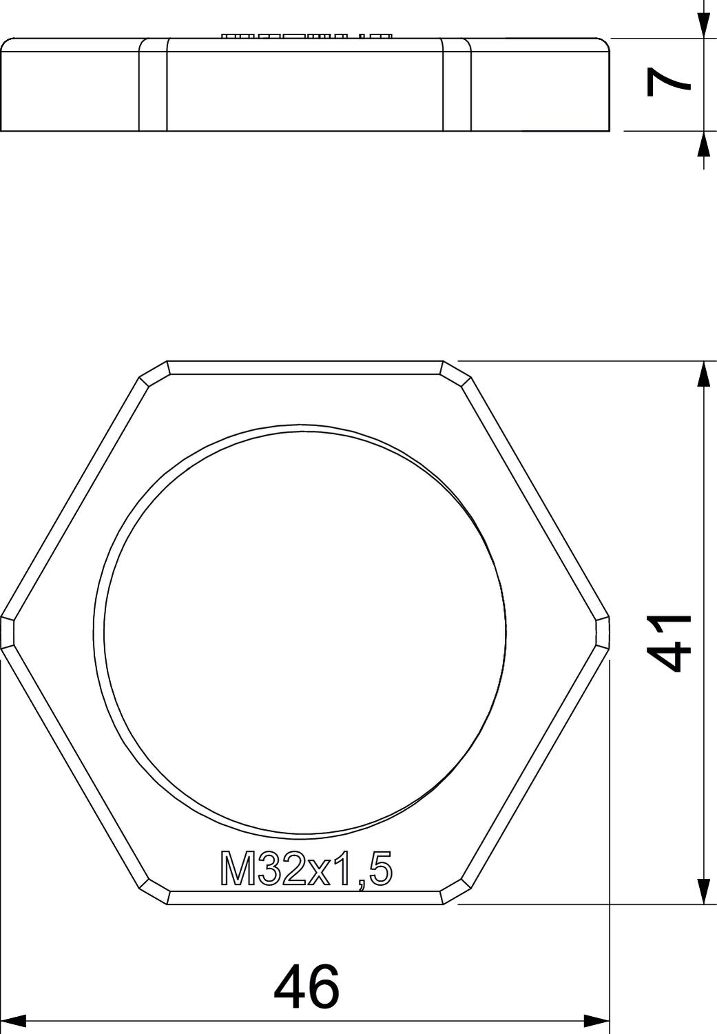 Cor cinzento claro; RAL 7035 Dimensão M32 Largura da chave 41 Livre de halogéneos sim Material Poliamida Medida E 46 mm Medida L 7 mm Pegada de CO2 (GWP) do berço ao portão 0,026 kg CO2e / 1 Peça Reforçado a fibra de vidro não Resistente não Rosca M32 x 1,5 Tamanho nominal da rosca métrica/PG 32 Tipo de rosca métrico - Todos os tipos