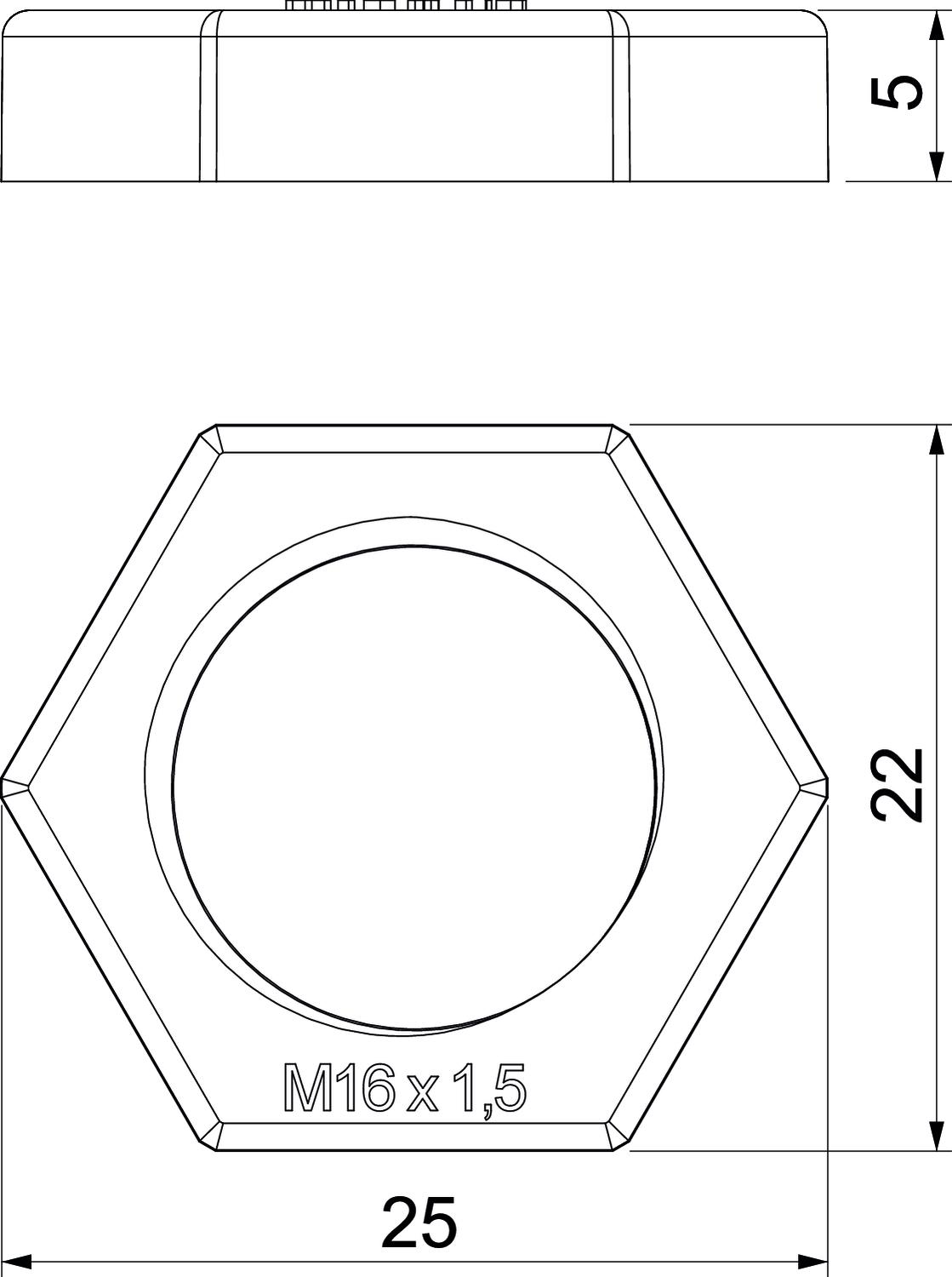 Cor cinzento claro; RAL 7035 Dimensão M16 Largura da chave 22 Livre de halogéneos sim Material Poliestireno Medida E 25 mm Medida L 5 mm Pegada de CO2 (GWP) do berço ao portão 0,0062 kg CO2e / 1 Peça Reforçado a fibra de vidro não Resistente sim Rosca M16 x 1,5 Tamanho nominal da rosca métrica/PG 16 Tipo de rosca métrico - Todos os tipos