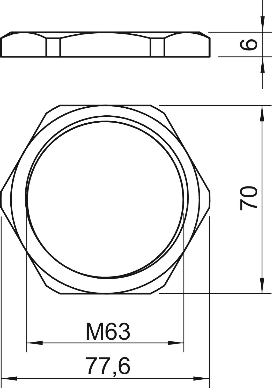 Dimensão M63 Largura da chave 70 Livre de halogéneos não Material Latão Medida E 77,6 mm Medida L 6 mm Pegada de CO2 (GWP) do berço ao portão 0,1345 kg CO2e / 1 Peça Reforçado a fibra de vidro não Resistente não Rosca M63 x 1,5 Superfície niquelado Tamanho nominal da rosca métrica/PG 63 Tipo de rosca métrico - Todos os tipos