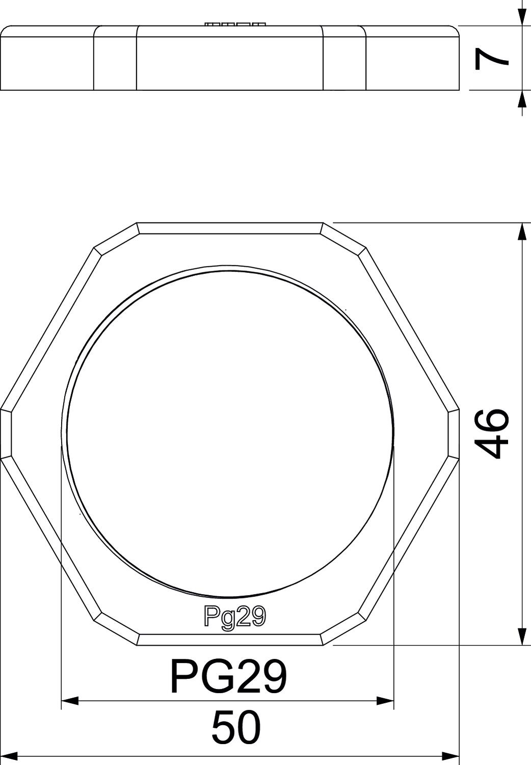 Cor cinzento claro; RAL 7035 Dimensão PG29 Largura da chave 46 Livre de halogéneos sim Material Poliestireno Medida E 50 mm Medida L 7 mm Pegada de CO2 (GWP) do berço ao portão 0,023 kg CO2e / 1 Peça Reforçado a fibra de vidro não Resistente sim Rosca Pg 29 Tamanho nominal da rosca métrica/PG 29 Tipo de rosca PG - Todos os tipos
