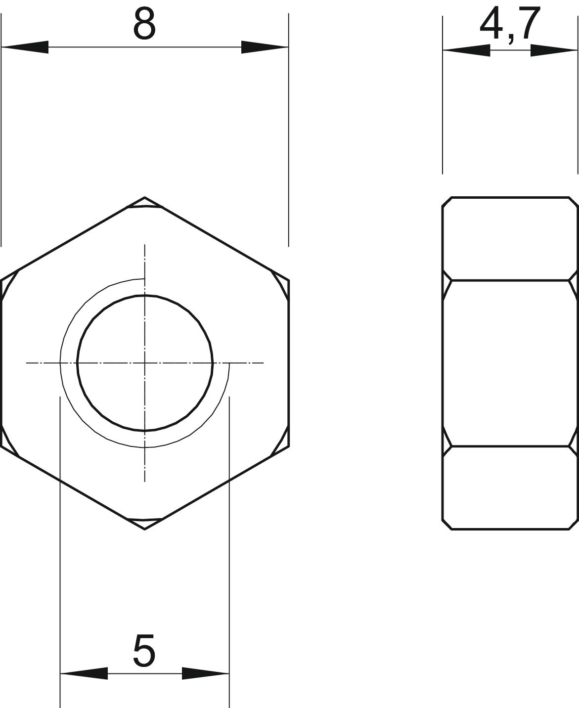 Classe de resistência 8.8 Com flange não Dimensão M5 Largura da chave 8 Livre de halogéneos sim Material Aço Medida d 5 mm Medida h 4,7 mm Pegada de CO2 (GWP) do berço ao portão 0,0031 kg CO2e / 1 Peça Rosca M5 Rosca inversa não Rosca métrica 5 Sistema de aparafusamento porca Sextavado exterior Superfície eletrogalvanizado Tipo de rosca métrico Travamento automático não Versão da porca Porca - Todos os tipos