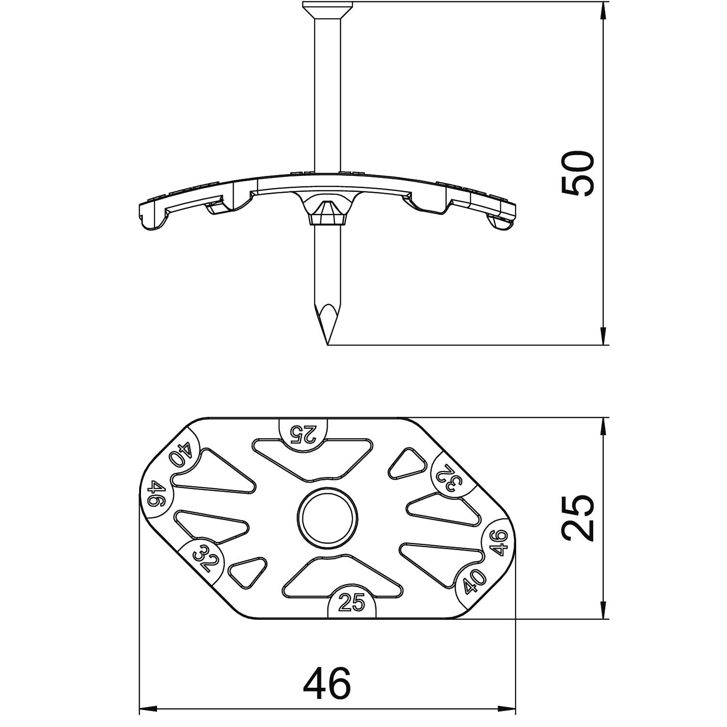 Descrição do produtoAbraçadeiras de pregos Nagel-Fix 2.0 com aço galvanizado a zinco pré-montado, para fixação de condutores em paredes de 25 - 46 mm e em alvenaria.