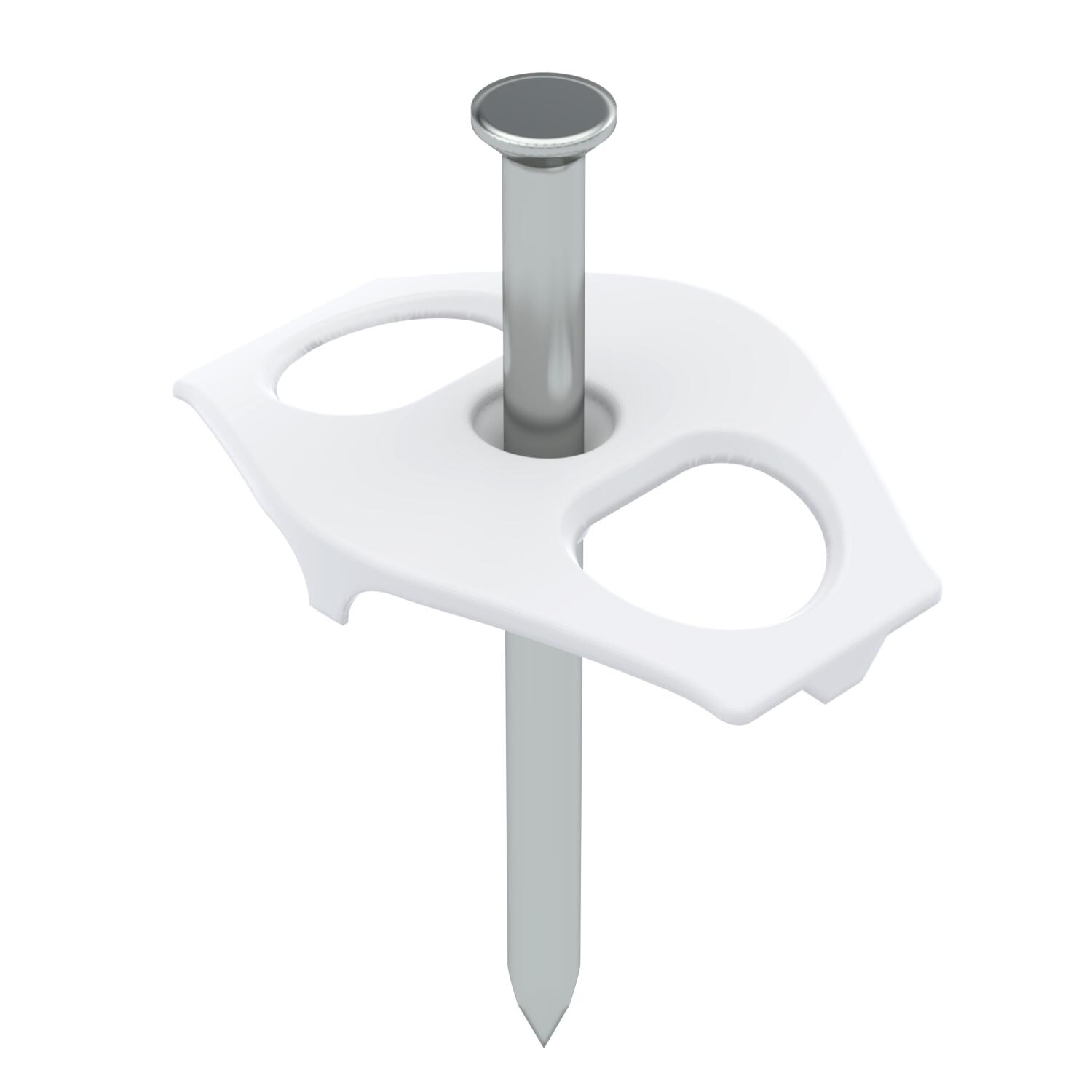 Descrição do produtoCom prego de aço galvanizado a zinco pré-montado de Ø 3 mm ou 3,5 mm, para a fixação de condutores em paredes e em alvenaria, para 1 ou 2 condutores NYM 3 x 1,5/2,5 mm² ou 1 ou 2 condutores NYM 5 x 1,5/2,5 mm².