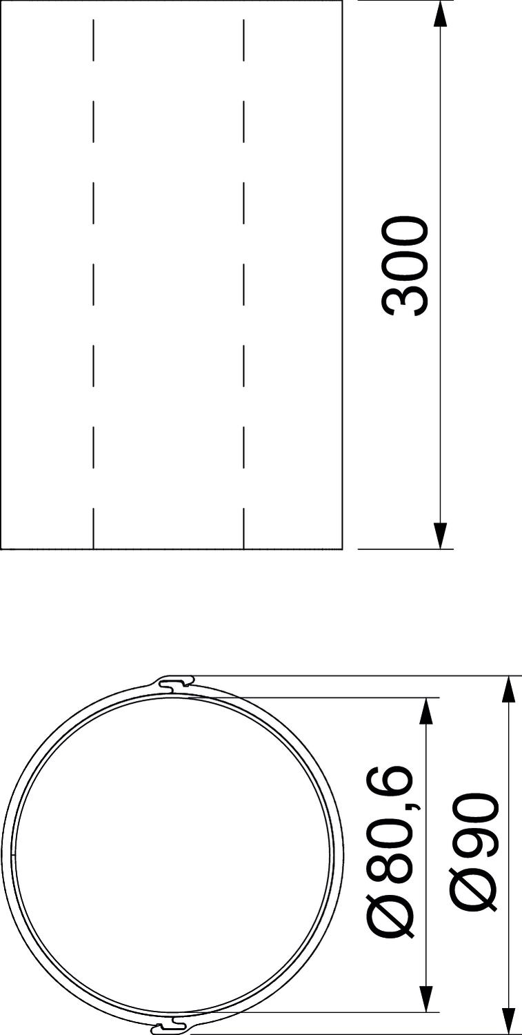 Comprimento 300 mm Cor cinzento Diâmetro 90 mm Dimensão 81x300mm Forma redondo Material Policloreto de vinilo Medida B 90 mm Medida d mín. 80,6 mm Medida L 300 mm Necessário acessórios não para abertura máx. 100 mm para abertura mín. 100 mm Versão da proteção antifogo Selagem da peça pronta - Todos os tipos