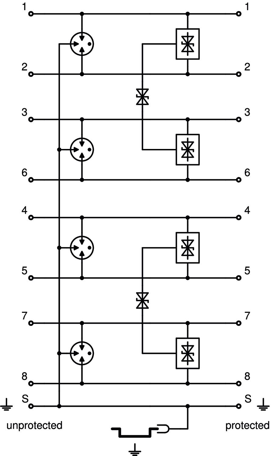 Amortecimento de inserção (Insertion loss) ≤3 dB Blindagem directo Contacto para telecomunicações não Cor cinzento prateado; RAL 7001 Corrente transitória total (8/20) 5 kA Dimensão 58V DST segundo IEC 61643-21 Classe II+III / C2+C1 Gama de temperaturas de aplicação máx. 80 °C Gama de temperaturas de aplicação mín. -40 °C Grau de proteção IP20 Kategorie Tipo 2+3 / C2+C1 Ligação à terra através de: Cabo de ligação/Calha DIN Ligação de blindagem sim LPZ 1→3 Material Alumínio Nível de proteção fio - fio <40 V Nível de proteção fio - terra <900 V Norma de ensaio IEC 61643-21 Número de polos 8 Pegada de CO2 (GWP) do berço ao portão 1,4746 kg CO2e / 1 Peça Rendimento de canal Ansi/EA CAT 6 Rendimento de canal ISO/IEC Classe E Resistência da potência de dissipação nominal fio - fio C1: 0,3 kV / 0,15 kA (8/20µs) Resistência da potência de dissipação nominal fio - terra C2: 3 kV / 1,5 kA (8/20µs) Sistema de encaixe RJ45 8(8) Tensão continua máxima CA 41 V Tensão continua máxima CC 58 V Versão Proteção fina, 8 fios + blindagem Versão verificada quanto a explosões não - Todos os tipos