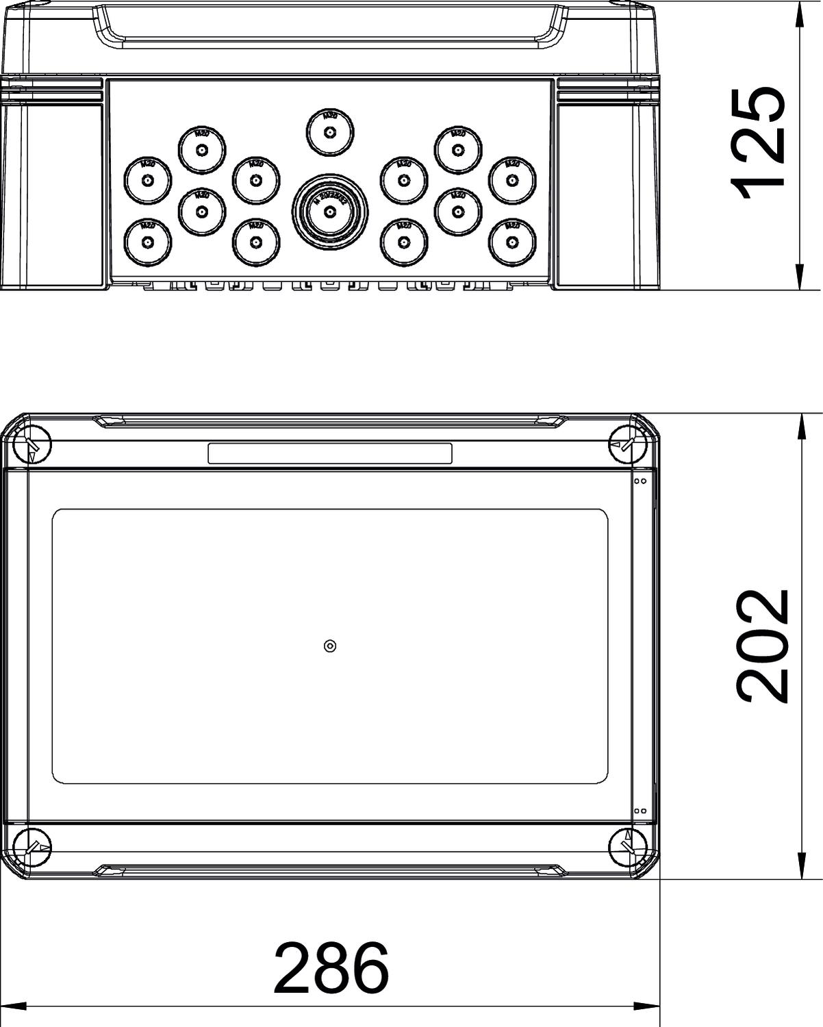 - 8 entradas de cabos elásticas Ø 20 mm para diâmetro de cabo de 0-17 mm
