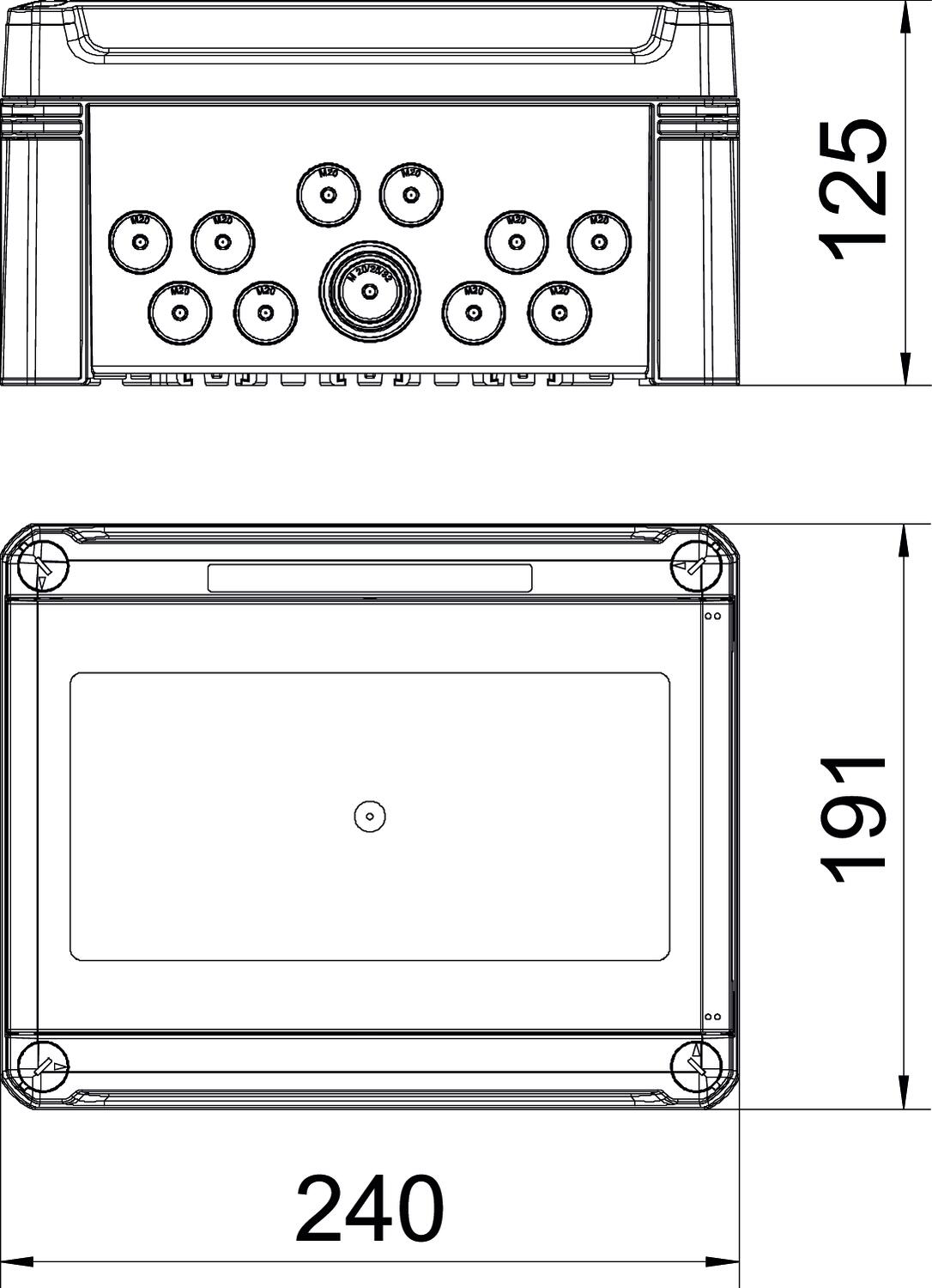 - 8 entradas destacáveis Ø 20 mm cada em cima e em baixo