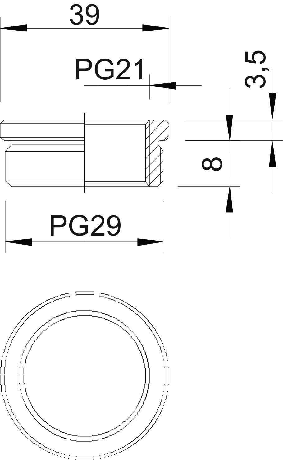 Descrição do produtoRedução (peça H) conforme a norma DIN 46320, com rosca PG conforme DIN 40430, para a transição de um furo roscado PG para um bucim mais pequeno.