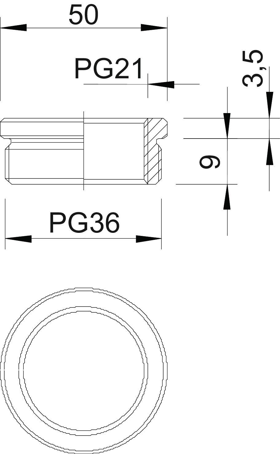 Descrição do produtoRedução (peça H) conforme a norma DIN 46320, com rosca PG conforme DIN 40430, para a transição de um furo roscado PG para um bucim mais pequeno.