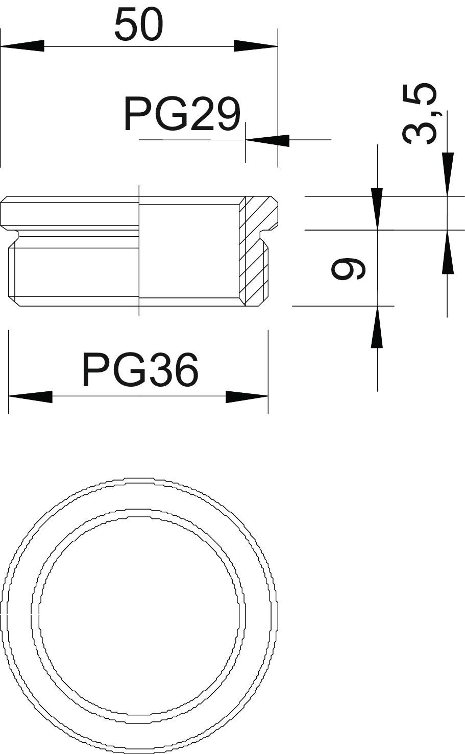 Descrição do produtoRedução (peça H) conforme a norma DIN 46320, com rosca PG conforme DIN 40430, para a transição de um furo roscado PG para um bucim mais pequeno.