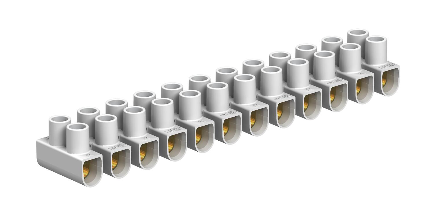 Bornes em aço, parafusos em aço, galvanizados a zinco, de 12 polos, réguas separáveis em réguas de bornes individuais através de "twist'n'pull".